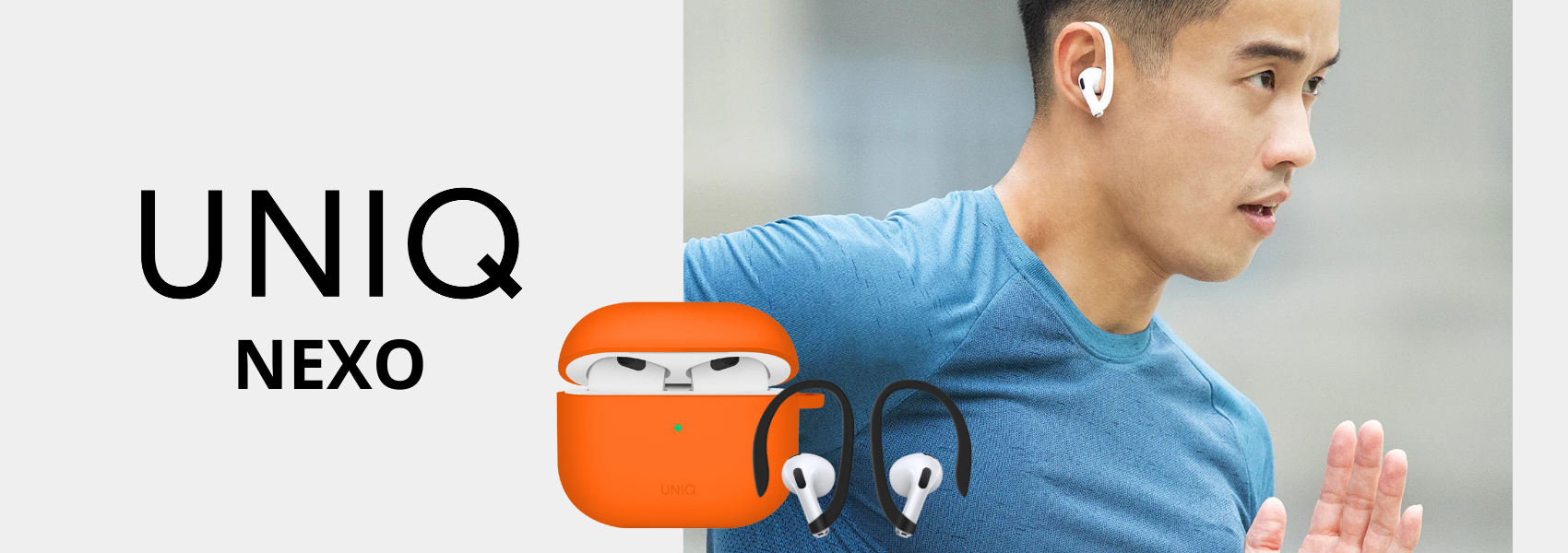 Additional accessories, such as an aluminum carabiner, allow for easy attachment of the case to a bag or backpack, perfect for traveling. The set also includes convenient ear hooks that ensure a secure fit for AirPods even during intense movement. Nexo combines reliable protection, comfort, and everyday style.
