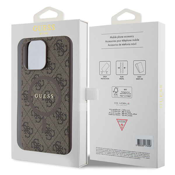 Unusual protective case with exclusive design is an ideal choice for enthusiasts of modern accessories. The Guess brand has for years been identified with excellent design and top quality, which is perfectly demonstrated in the 4G Collection Leather Metal Logo MagSafe protective cases collection. This elegant series of cases is a must-have accessory for anyone who insists on style, finesse and uniqueness, and wants to incorporate the sophisticated aesthetics of the Guess brand into the protection of their smartphone. Present yourself in style and show off your excellent taste.