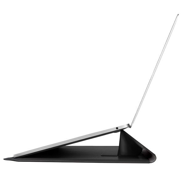 This accessory has a compact profile and is very slim, secured with a magnetic closure. It is designed to make it as easy as possible for the user to work with the computer – the intelligent cover folds in seconds and snaps magnetically, transforming into a contoured stand at a 25-degree angle, providing the user with long hours of comfortable work at a desk or in a café.