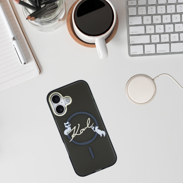 IML Choupettes Karl Series Script Logo MagSafe It is the perfect solution for those who desire harmony between functionality and exceptional style for their smartphone. Offering solid protection, this unique collection not only ensures the safety of the device but also adds a distinctive character to it, attracting attention with its unique design.