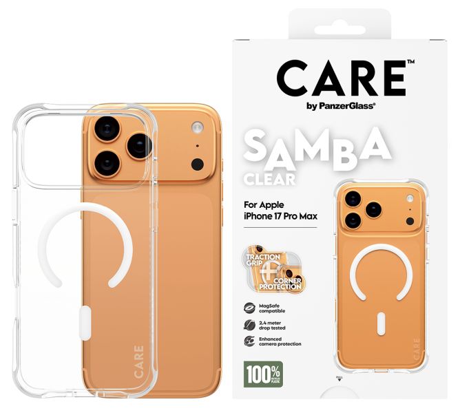 CARE by PanzerGlass Fashionable Samba w. White MagSafe Apple iPhone 17 Pro Max clear