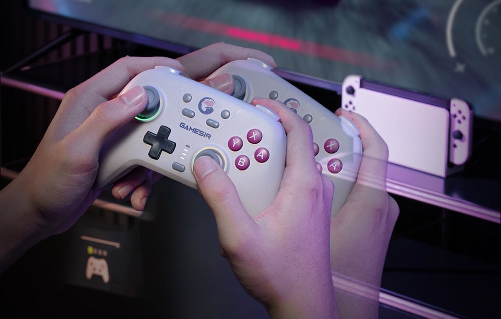 Boost your win stats with GameSir. The T4n controller is compatible with Nintendo Switch, PC, iOS, and Android. It features advanced functions such as GameSir™ Hall Effect Sticks, customizable RGB lighting effects, and two vibration motors. The device also supports 3 connection methods.