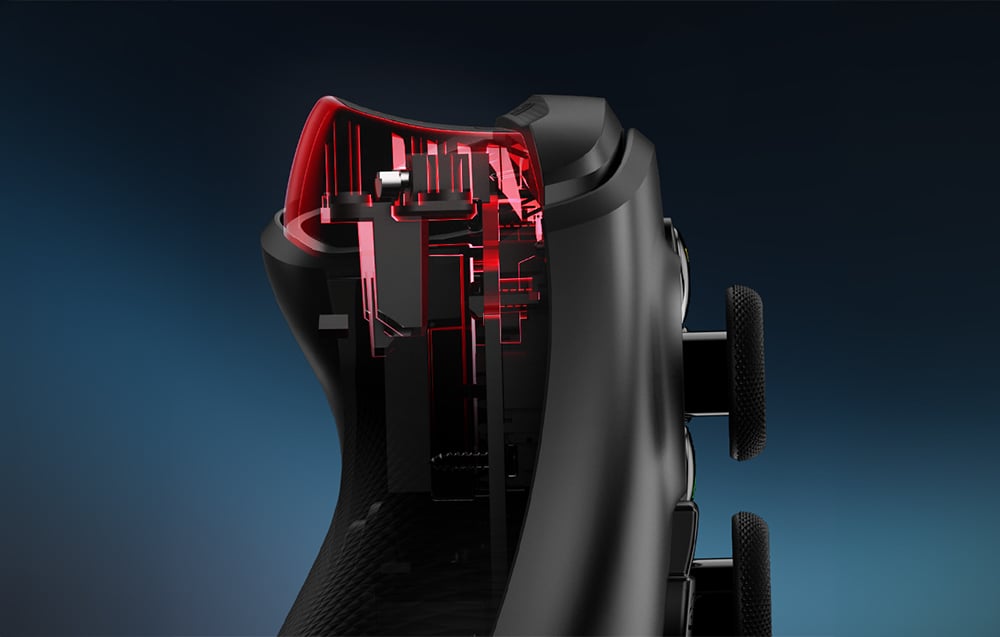 The G7 HE model is designed for gamers who value not only functionality but also comfort and durability. Equipped with a touch-sensitive yet cushioned micro switch, the front buttons can withstand up to 3 million presses, providing responsive and clicky feedback. The character of the buttons is distinctive and refers to the e-sports style, enhancing the gaming experience. Two separate motors in the grips offer strong and subtle vibrations, while the asymmetric motors in the triggers deliver precise reactions to every action, adding realism and intensity to each gameplay session.