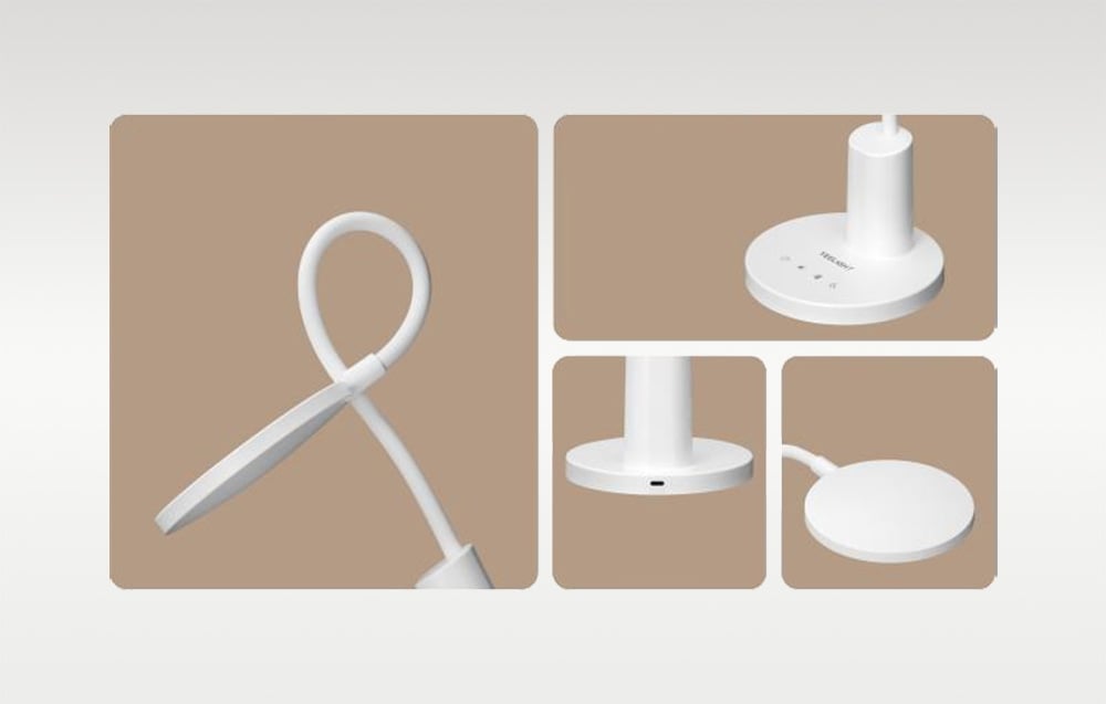 The flexible arm of the lamp, which can be rotated 360°, allows precise adjustment of the light angle. Rounded edges enhance safety during use, and the soft material finish makes the device pleasant to touch.