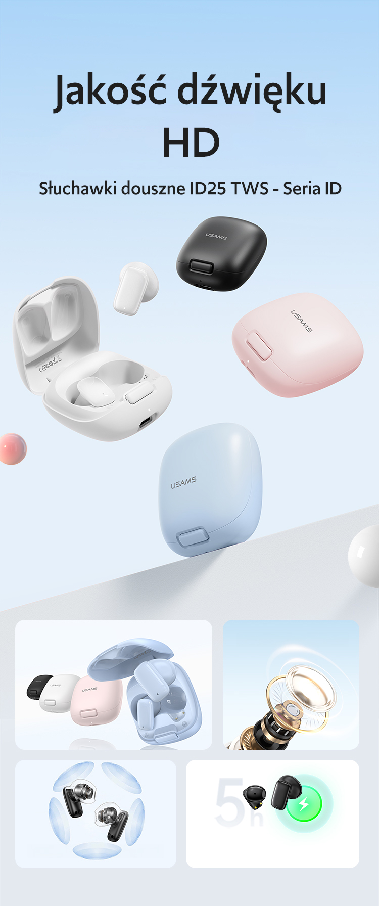 USAMS ID Series ID25 wireless headphones Bluetooth 5.3 TWS white