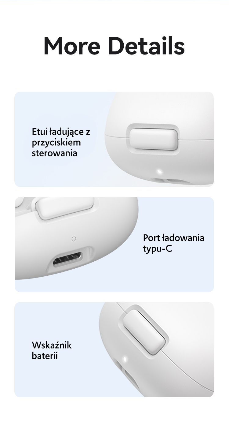 The device provides stronger protection against interference, resulting in clearer and cleaner sound. Advanced noise cancellation technologies eliminate unwanted background noise, allowing you to enjoy your music without distractions. In addition, the device features lower power consumption, which significantly extends the operating time on a single charge.