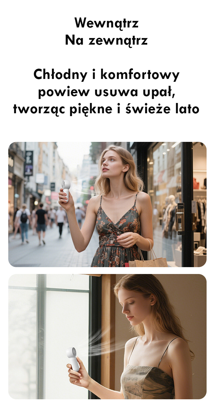 Thanks to its compact dimensions of 111 × 47 × 33 mm and a weight of just 55 g, it can easily fit in a pocket, handbag, or backpack, making it a practical companion in any situation. Made from durable ABS and PP materials, it is characterized by sturdiness and resistance to damage, while also featuring an aesthetic, modern appearance. The fan is equipped with a three-step speed adjustment, allowing you to customize the airflow strength to individual preferences — from a gentle breeze to intense cooling.