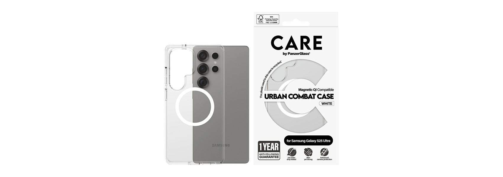 CARE by PanzerGlass Flagship Urban Combat White QI Samsung Galaxy S25 Ultra clear