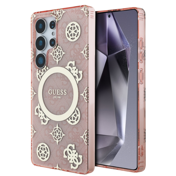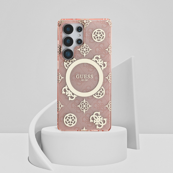 Guess 4G Background Gold Electroplated Peony Pattern MagSafe Samsung Galaxy S25 Ultra pink