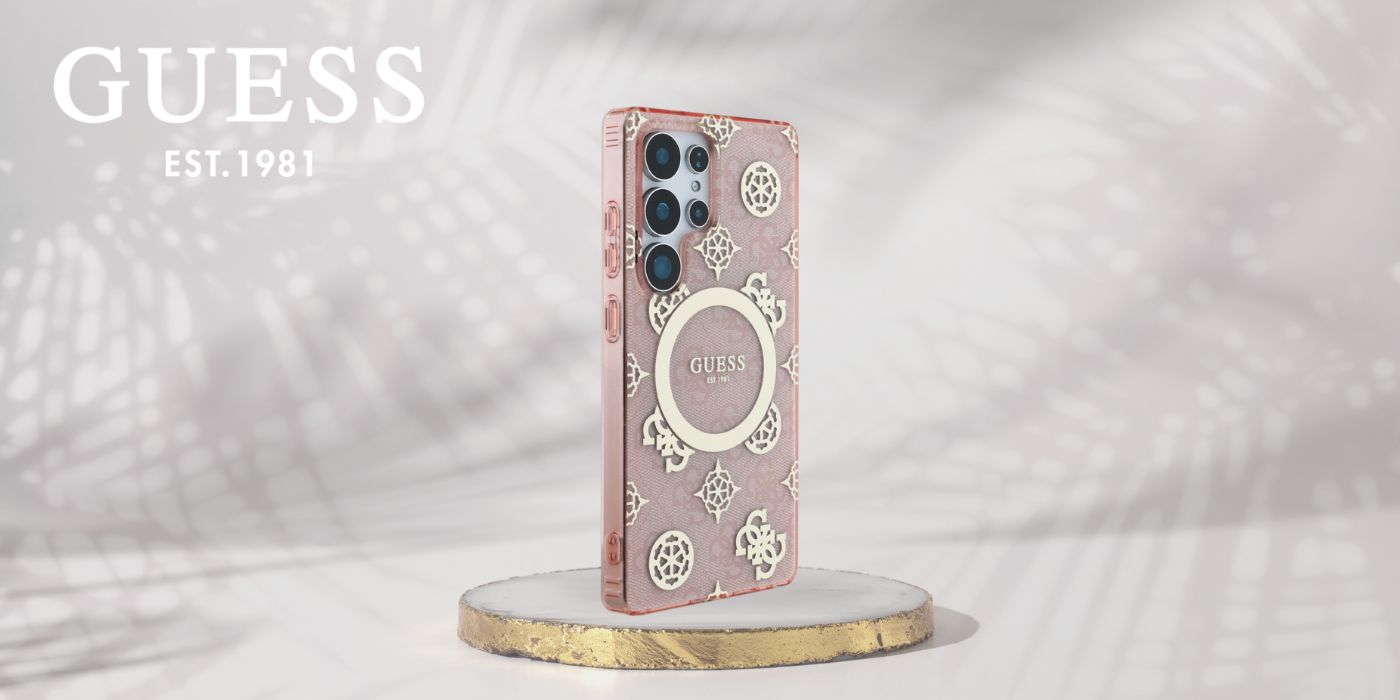 Exclusive case protective from a reputable brands Guess It is a combination of elegance and style at the highest level. The case is made of high-quality... polycarbonate and polyurethane. The surface is adorned with a characteristic gold and black pattern. 4G and a golden ring MagSafe.