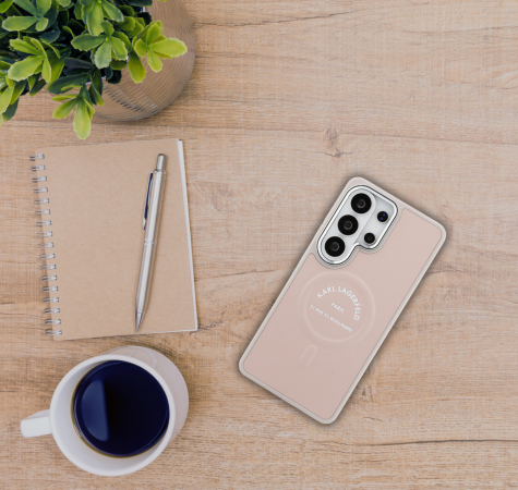 Karl Lagerfeld Embossed Ring RSG Logo MagSafe Samsung Galaxy S26 Ultra pink