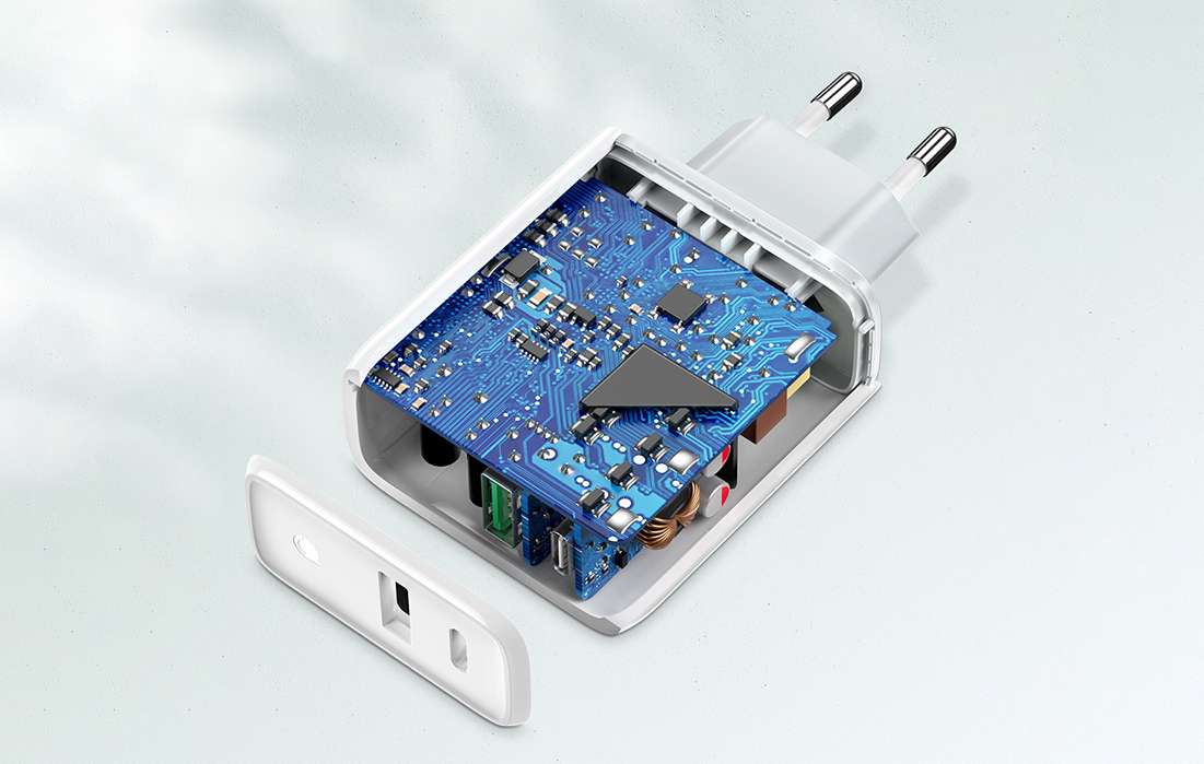 The charger is equipped with USB-A and USB-C ports that support fast charging protocols such as PD3.0, QC4.0, QC3.0, QC2.0, Huawei FCP, and AFC. With it, you can quickly charge up to 2 devices simultaneously with a power of up to 18 W each. What does this mean in practice? Your Huawei Nova 3 can be fully ready for use in just under 2 hours!