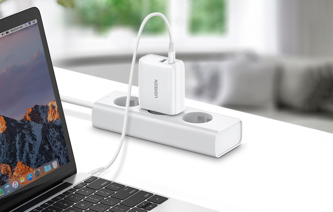 The product also allows for charging laptops. The power of 36 W is enough to fully charge a MacBook Air 13 in about 2.2 hours. Use the UGREEN CD170 charger at home, at work, or on vacation to ensure that even if your device fails you, it will be back to full working order in no time!