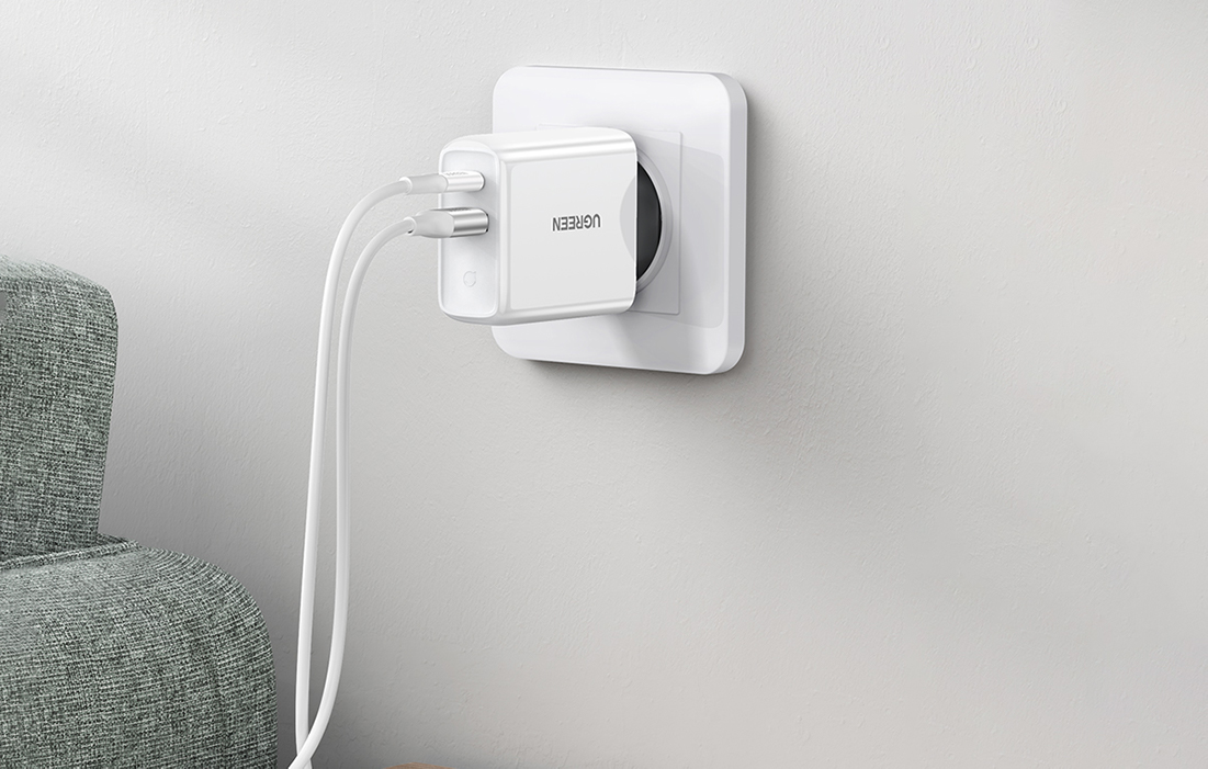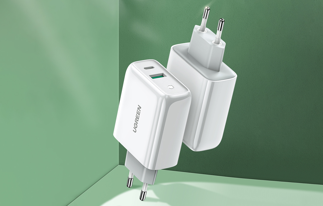 UGREEN CD170 wall charger with USB-C and USB-A ports.