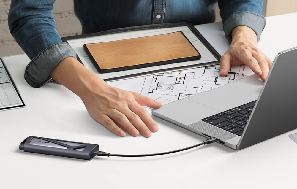 The Ugreen CM767 enclosure supports both M.2 NVMe and M.2 SATA drives with a capacity of up to 8 TB, as well as the four most popular SSD sizes (2230, 2242, 2260, 2280). It is compatible with a wide range of devices, including computers, laptops, tablets, and smartphones like iPhone, Huawei, and Samsung Galaxy. Regardless of the operating system – Windows, macOS, iOS, Linux, or Android – you can enjoy fast access to your data without the need to install additional software.