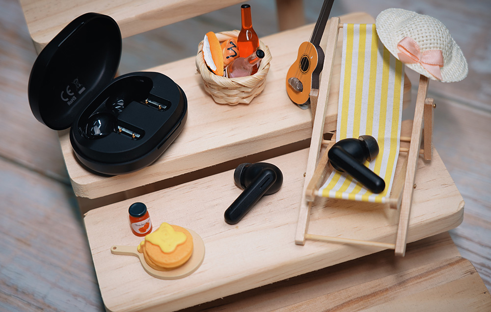 Enjoy high sound quality. Headphones. Haylou The GT7 Neo provides stunning sound thanks to its 8-millimeter drivers, and it also stands out with a long battery life. They offer a low-latency mode designed for gamers and utilize Bluetooth 5.2, which allows for reliable, stable transmission. They also support noise reduction during phone calls. Additionally, they are exceptionally comfortable and lightweight – each one weighs only 3.9 grams.