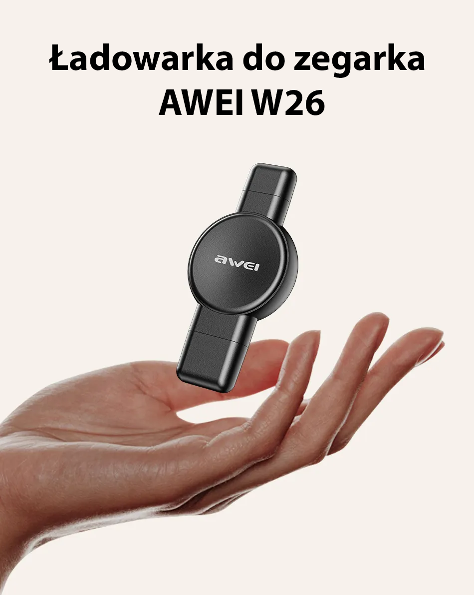 AWEI W26 is the perfect choice for those who value minimalism and practical solutions. Thanks to its exceptionally slim design and lightweight, compact form, you can easily fit the charger in your pocket, bag, or backpack. Its miniature size makes it indispensable during travel, weekend getaways, or daily use. No matter where you are, you can be sure that your smartwatch will always be ready for action, and the charger won't take up valuable space in your luggage.