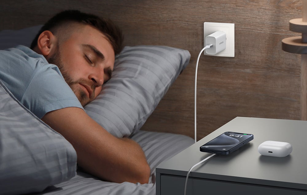 With the included 1.5-meter USB-C cable, the Ugreen W703 charger provides complete freedom while charging. Whether you're on the couch, in bed, or at your desk, you always have enough cable length to use your phone without interruption. The braided cable not only looks stylish but is also exceptionally durable.