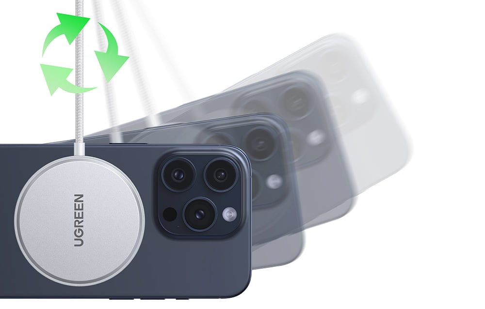 With the Ugreen W703 charger, you can forget about imprecisely positioning your phone on the charger. MagSafe magnetic technology allows for a secure and precise connection with your iPhone, even while using it. Checking emails, making calls, or watching movies while charging has never been easier – the device stays firmly in place, and you don't have to worry about interruptions in charging.