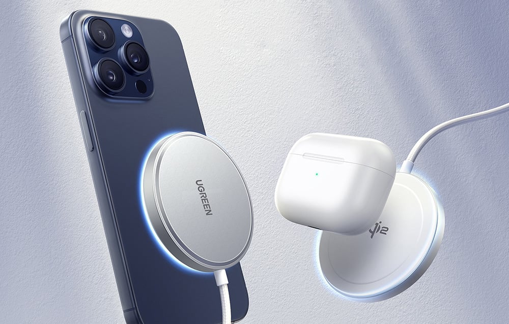 Do you have more than one Apple device? The Ugreen W703 is a charger that will meet all your needs. It is designed specifically for iPhone 16/15/14/13/12 and AirPods 3/2/Pro, allowing you to conveniently charge both your phone and headphones. Moreover, the charger is compatible with other phones that support wireless charging – just use a special magnetic case.
