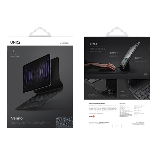 Discover the UNIQ Venno Magnetic Smart Case with Keyboard - the perfect combination of protection, functionality and elegance. This case provides the perfect viewing angle on your iPad, while the built-in keyboard and trackpad allow for seamless interaction. With Venno, your iPad becomes a full-fledged tool for work, creation and entertainment.