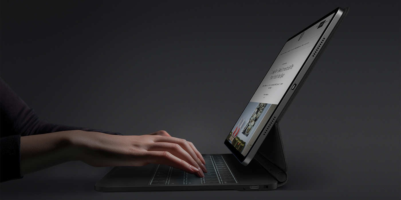 The full edge-to-edge keyboard is the perfect companion for your work. With responsive typing and a flexible trackpad, you can work efficiently on your iPad, whether you're creating, communicating or viewing content.