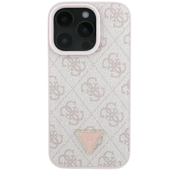 The uniqueness of this collection is highlighted by the delicate eco-leather, adding elegance and subtle charm. The high-quality 4G print gives it style and sophistication. Completing this refined collection is the logo patch on the case. Guess in a characteristic triangular shape adorned with crystals, which stands out against the entire design and emphasizes its exclusive nature.