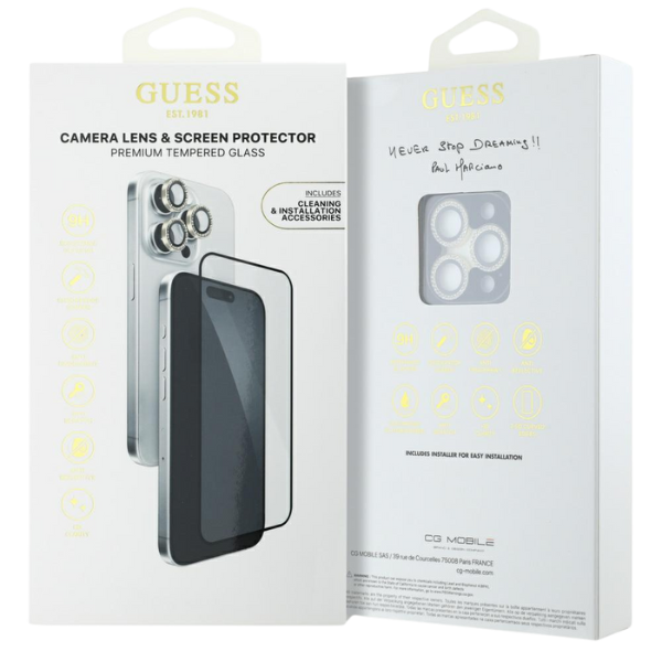 Secure your phone. tempered glass Guess, which combines functionality with elegance. Set 2w1 Guess BP Rhinestone It is an excellent protection for your phone and cameras providing immunity for everyday challenges.