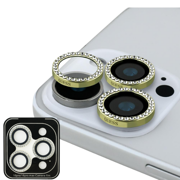 Guess BP Rhinestone 2in1 set tempered glass + lens protector Apple iPhone 16 Pro Max gold
