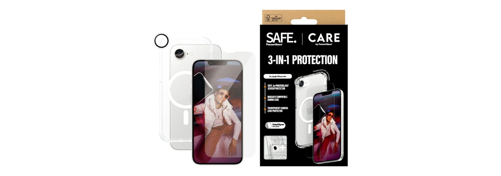 CARE set by PanzerGlassThe ® Fashion 3-in-1 Protection Bundle is a practical and aesthetic solution for those who want to comprehensively protect their smartphone without giving up modern design and care for the environment.