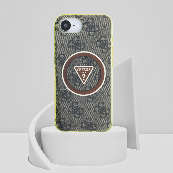 Guess IML Metal Glitter 4G Circle Triangle MagSafe Apple iPhone 17e / 16e brown
