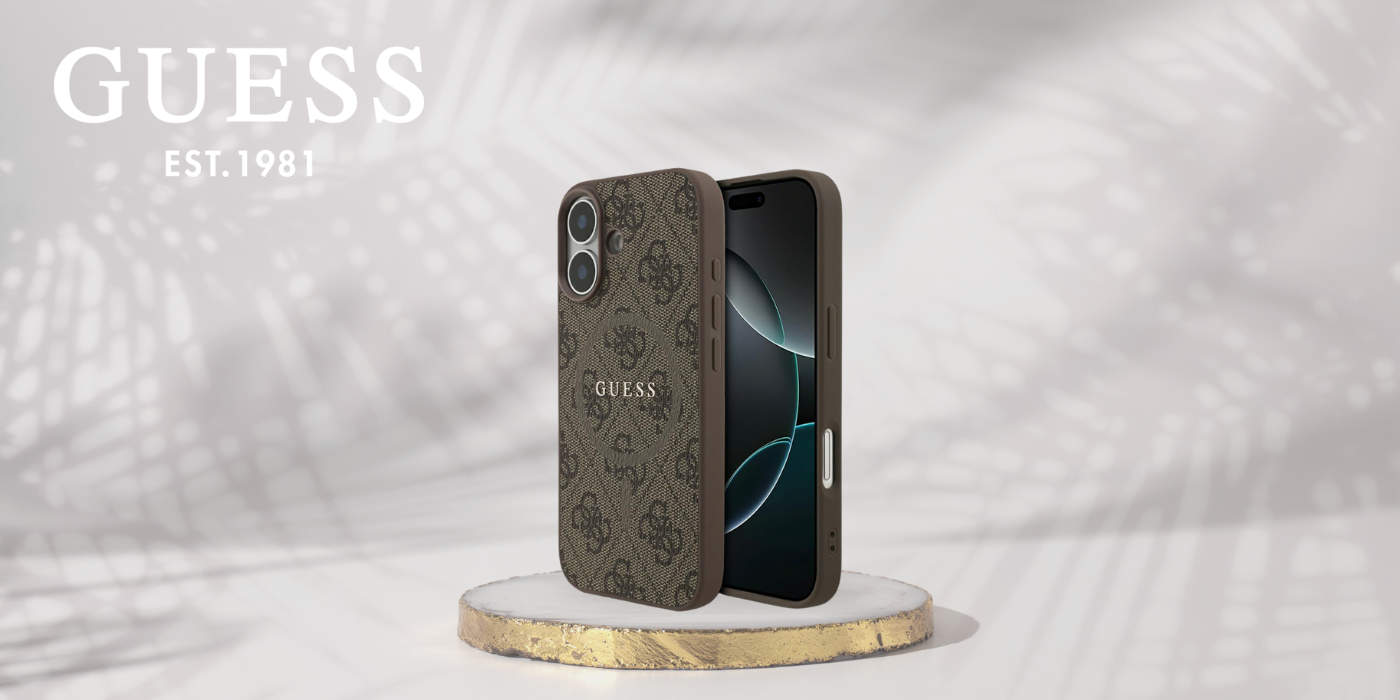 Exclusive case protective from a reputable brands Guess It is a combination of elegance and style at the highest level. The case is covered with high-quality... eco-leather, whose surface is adorned with a characteristic pattern 4G and a ring MagSafe.