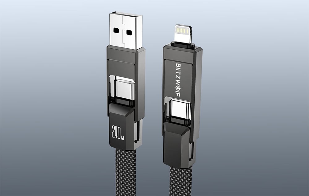Blitzwolf BW-HDC7 4-in-1 USB Cable USB-A, USB-C / USB-C, Lightning 240W 1.2m (black)