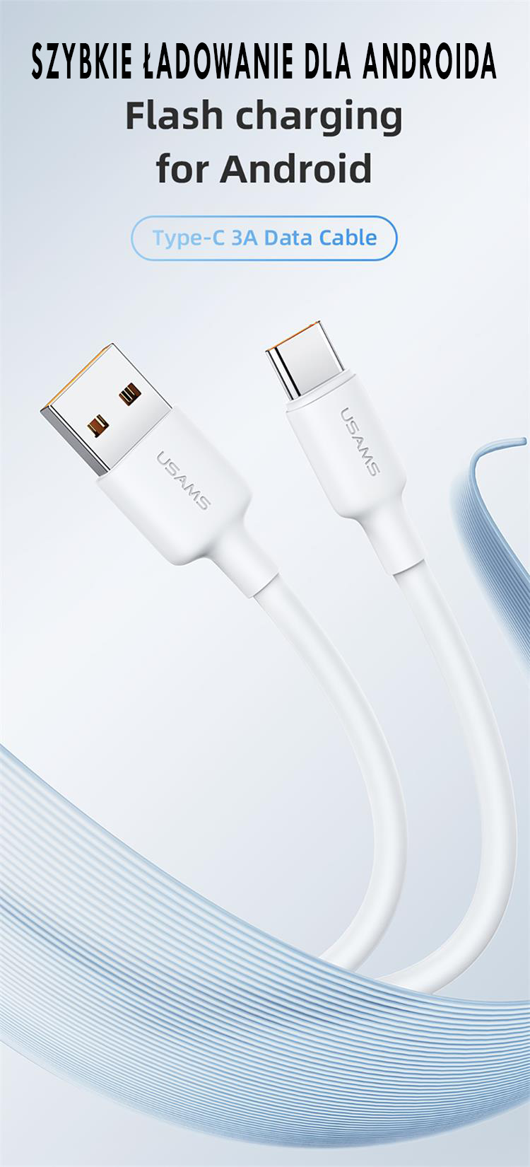 The USAMS U84 Type-C 3A in the 3-meter version (model US-SJ603) is a long, durable cable for charging and syncing devices with a USB-C port, allowing freedom to use your phone or tablet even when the outlet is far away. The USB-A ↔ USB-C design ensures wide compatibility with chargers, power banks, and computers, while support for up to 3 A allows for fast and stable energy replenishment in compatible mobile devices. With a data transfer rate of up to 480 Mb/s, copying photos, videos, and documents is smooth and reliable, without connection interruptions.