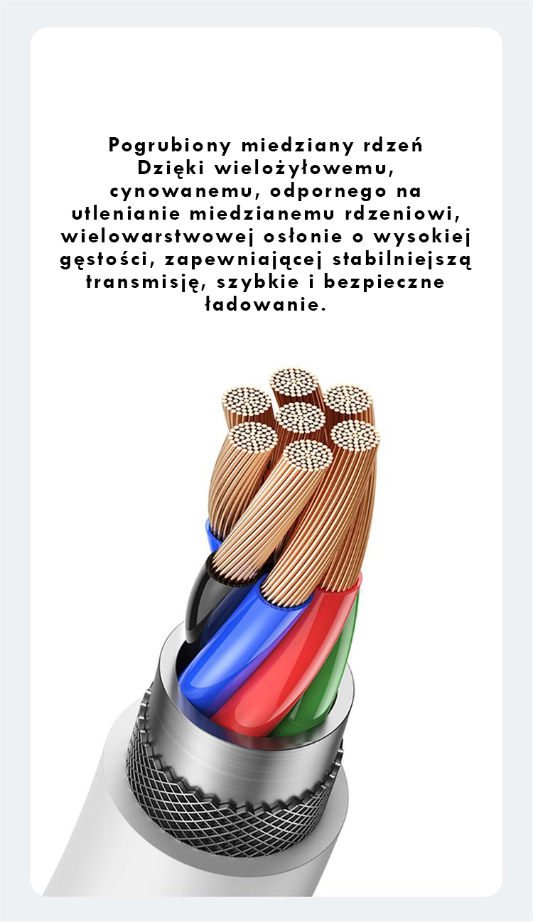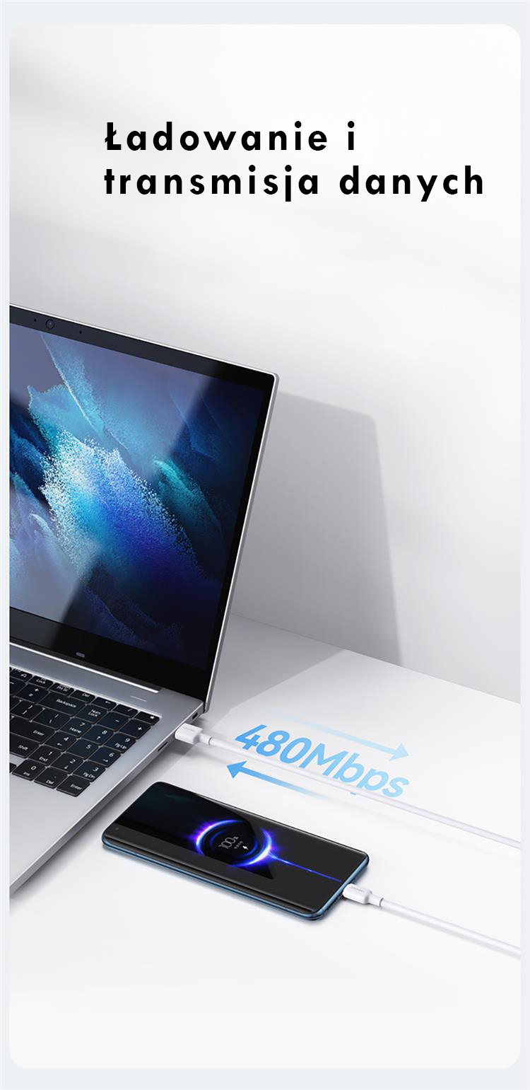 It's a practical "all-purpose" cable: it works well for charging smartphones and tablets, powering accessories, using a power bank on the couch, as well as during video calls or car navigation when the device cannot be placed right next to the charger. The 3-meter length provides comfort for arranging a workspace and entertainment area, while also not compromising on charging speed or transfer stability.