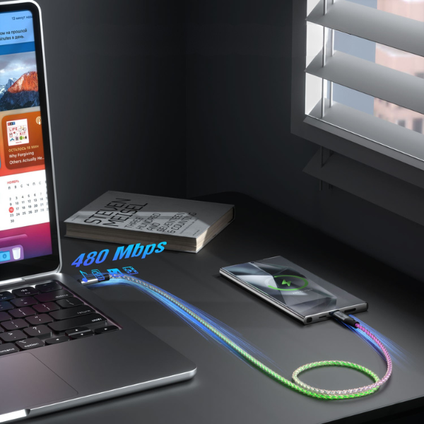 His unique feature is animated RGB backlighting, which gives it an impressive appearance and makes it easier to locate the cable in the dark.
