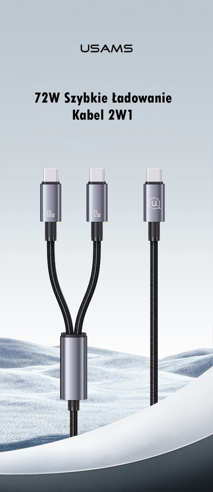 USAMS USB-C / 2xUSB-C cable 72W 1.2m Aluminum Alloy Data Cable Sufeng Series