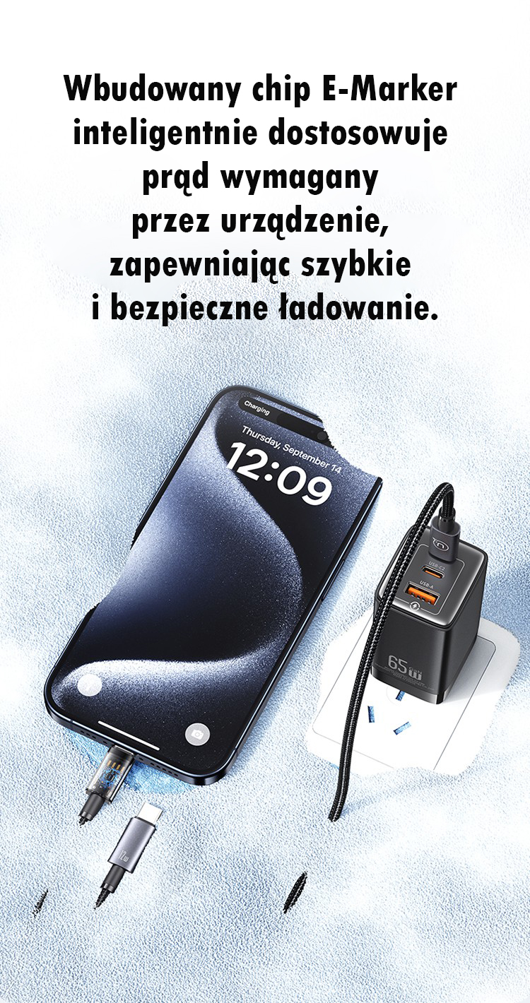 Thanks to the built-in E-Marker chip, the device intelligently adjusts the current necessary for charging and regulates the voltage in real-time. This advanced system ensures the safety of the device by eliminating the risk of overcharging, which contributes to increasing its durability and efficiency.