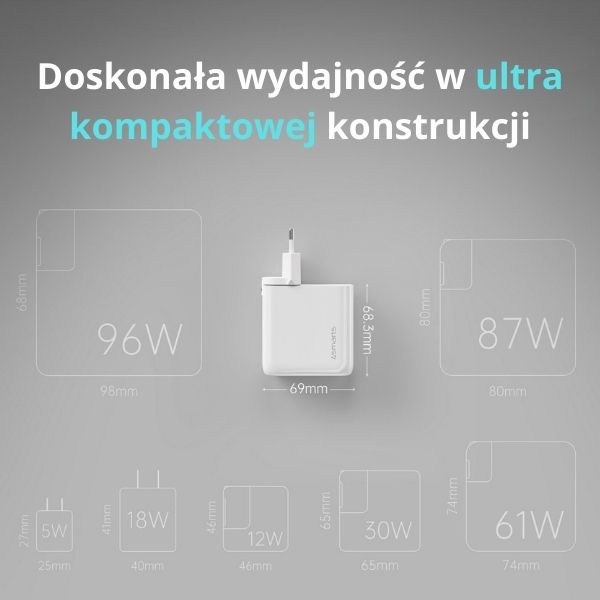 Innovative technology GaN transfers charging to a whole new level. Thanks to better use of energy I effective heat dissipation, , GaN provides fast I unfailing charging, simultaneously making the charger significantly smaller I lighter.