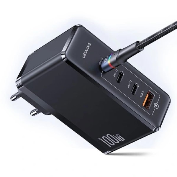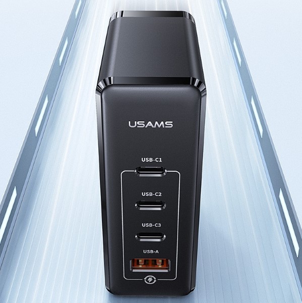 USAMS T50 Wall Charger 3xUSB-C+1xUSB GaN 100W PD Fast Charge black (US-CC163)
