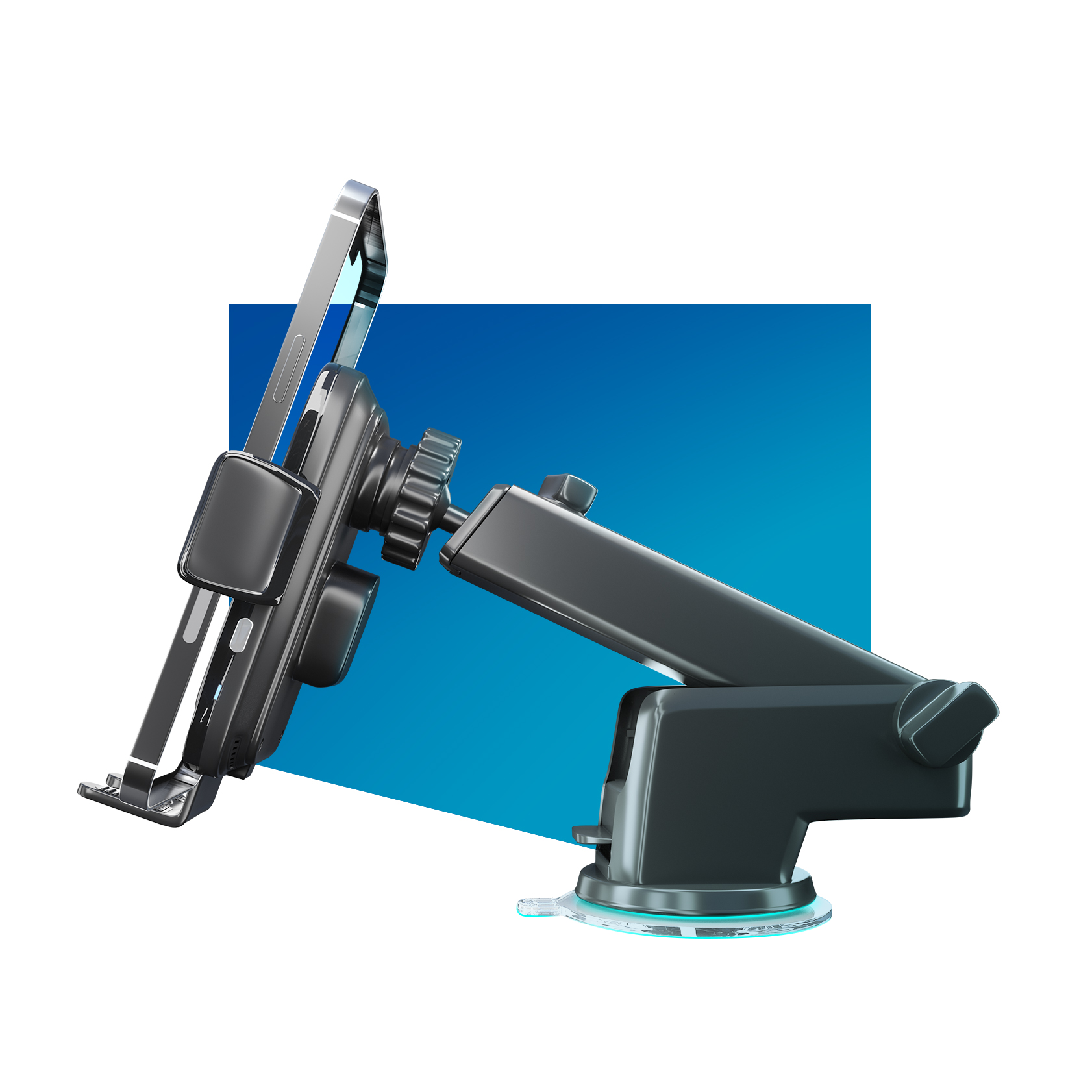 With Drive & Charge™, your phone is always where you like it. The holder has two types of mounting – a clip and a telescopic arm with a strong suction cup. Therefore, you can attach the holder in the air vent, on the windshield, or on the dashboard. Moreover, the rotating pin allows you to position your phone in the holder at any angle, and the telescopic arm enables you to set the phone in the most optimal position. Do you value comfort during your travels? Choose Drive & Charge™ for a convenient and safe way to use your phone while driving.