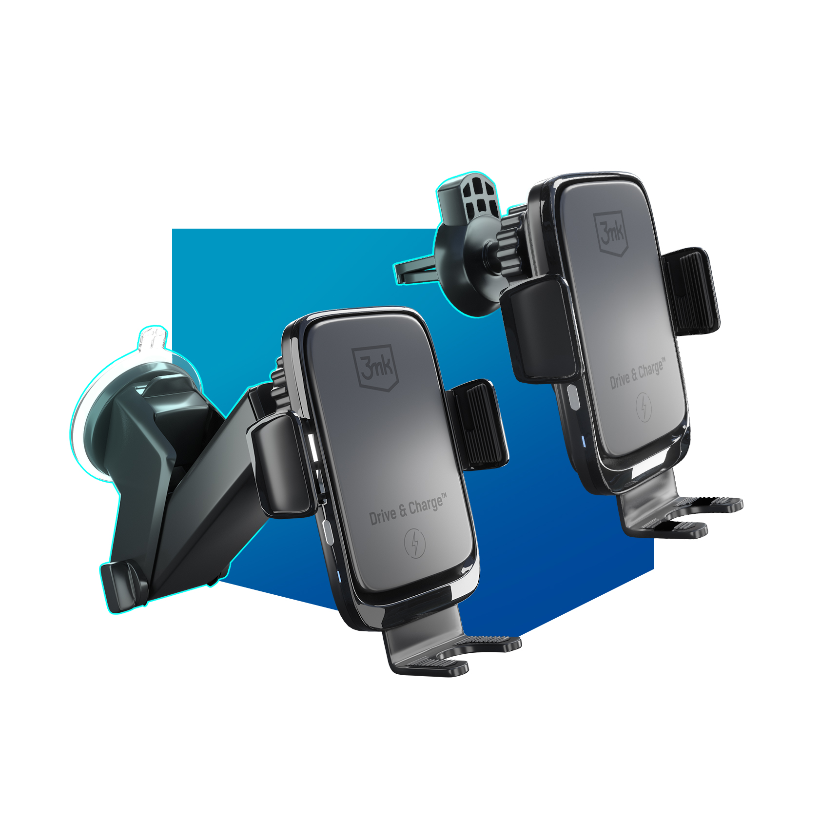 Dead battery on the go? Never, if you have Drive & Charge™. The holder features wireless charging capabilities with up to 15W power, allowing you to use apps in the car without limitations. Importantly, the wireless charging panel has a cooling system, ensuring that your phone doesn’t overheat in the holder and the battery remains constantly full. Choose Drive & Charge™ - advanced protection for your smartphone while you drive! *Charger is not included in the package. We recommend using the 3mk Protection Hyper Car Charger 30W.