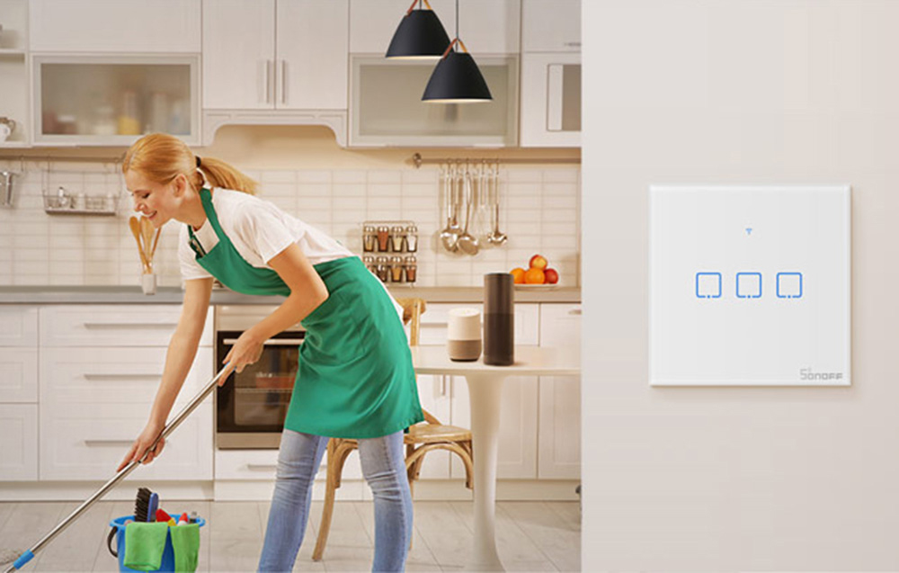 Touch light switch WiFi + RF 433 Sonoff T2 EU TX (3 channel) new version