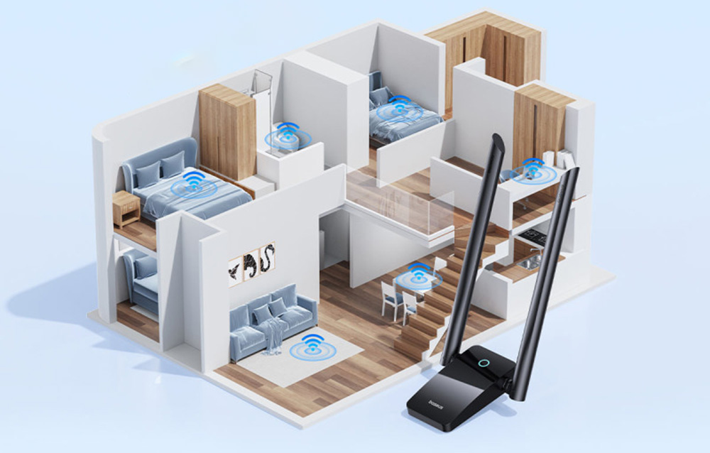 The WiFi Adapter Baseus FastJoy provides exceptional data transfer speeds of up to 1800 Mbps. With support for dual-band frequencies – 2.4 GHz (600 Mbps) and 5.8 GHz (1200 Mbps), you can comfortably watch high-quality movies, play online games without lag, and use the Internet without interruptions. This is the perfect solution for demanding users looking for a reliable connection.