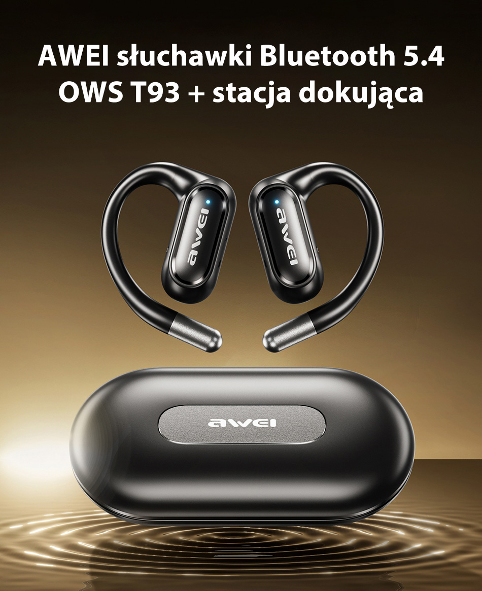 AWEI T93 Bluetooth 5.4 OWS wireless headphones + docking station black