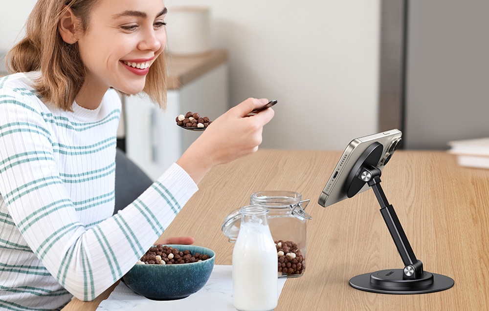 The UGREEN LP862 magnetic stand is an excellent solution for those looking for a convenient and stable support for their mobile device. With the use of 17 N52 magnets, the stand provides effortless and secure attachment to devices with MagSafe support, including iPhone 15, 14, 13, 12 models and other compatible cases. This reliable accessory allows for easy positioning of your smartphone in a comfortable position.