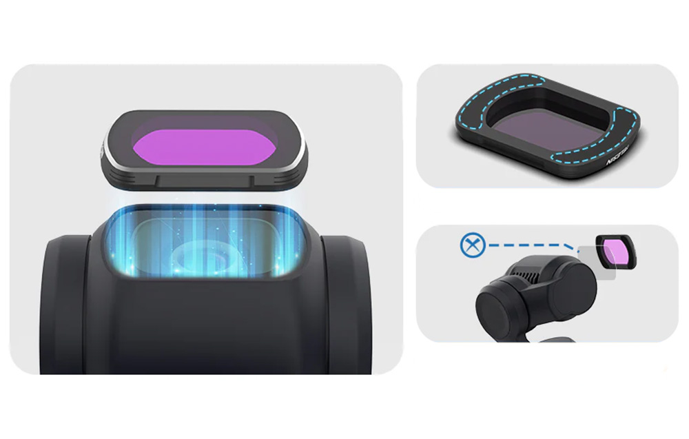 The TELESIN filters are equipped with a strong magnetic mount that allows for quick and secure attachment to the DJI Osmo Pocket 3 camera. This makes filter swapping extremely simple and requires no additional tools. However, it is important to note that tempered glass on the lens may affect the performance of the magnets, so it is recommended to remove it before installing the filters.