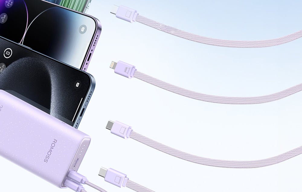 With an impressive capacity of 10000mAh, Romoss PHA10 provides long-lasting power for your devices. Thanks to automotive-grade batteries, it offers better performance than traditional power banks, ensuring stable and reliable charging in any situation. It is equipped with Fit Charge technology, which intelligently adjusts power to different devices, providing fast and safe charging. One cable offers three types of charging: optimization for a wide range of Android devices, fast charging via Lightning port, allowing you to quickly charge your iPhone, and self-charging via USB-C. Additionally, the power bank charges itself to 100% in just 3.5 hours, ensuring that it is always ready for use.