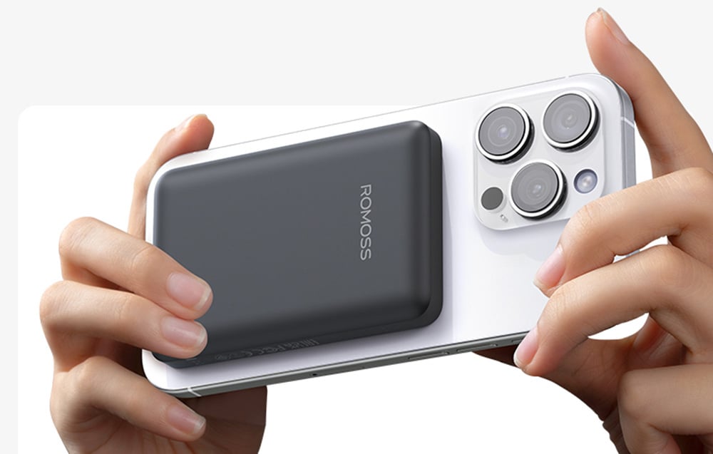 With a capacity of 5000mAh, Romoss WSC05 provides approximately 110% external power for the iPhone 15 Pro, allowing for a full charge of the phone about 1.1 times. Thanks to the 20W charging technology, the powerbank enables fast charging of the iPhone 15 Pro to 60% in just 30 minutes. Additionally, it supports fast charging up to 20W for devices from Apple, Samsung, Huawei, and Xiaomi, as well as magnetic charging up to 15W for iPhones from the 12-15 series.