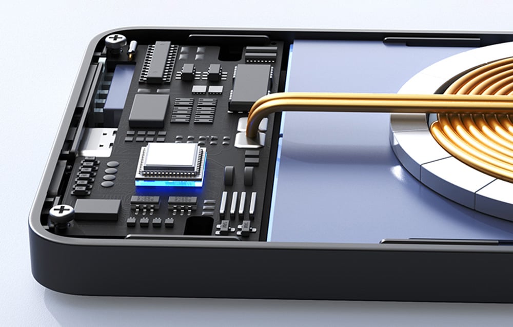 The exceptional 14N magnet allows for easy and secure attachment of devices weighing up to 1.3 kg, which is equivalent to about 6.9 phones. The magnets do not obstruct the camera lens, ensuring full functionality of the phone while using the powerbank. The magnetic charging activates automatically upon connection to the smartphone, without the need for manual activation, making the usage convenient and intuitive.